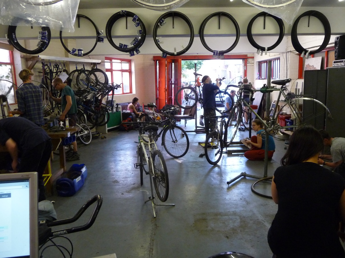 Our drop-in workshop is open on Mondays 5 – 8pm and Thursdays 4 – 8pm. Know what you’re doing and just need access to a stand and tools? Have a problem with your bike but no idea where to start? Just want to buy some parts? We’re open for you! Drop by and we’ll aim to give you as much guidance as you need so that you can repair your bike. Sometimes we’re full and you might be asked to wait or come back another day. Find out more about what to expect in the workshop.